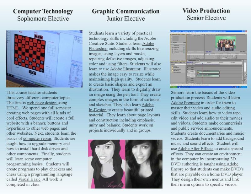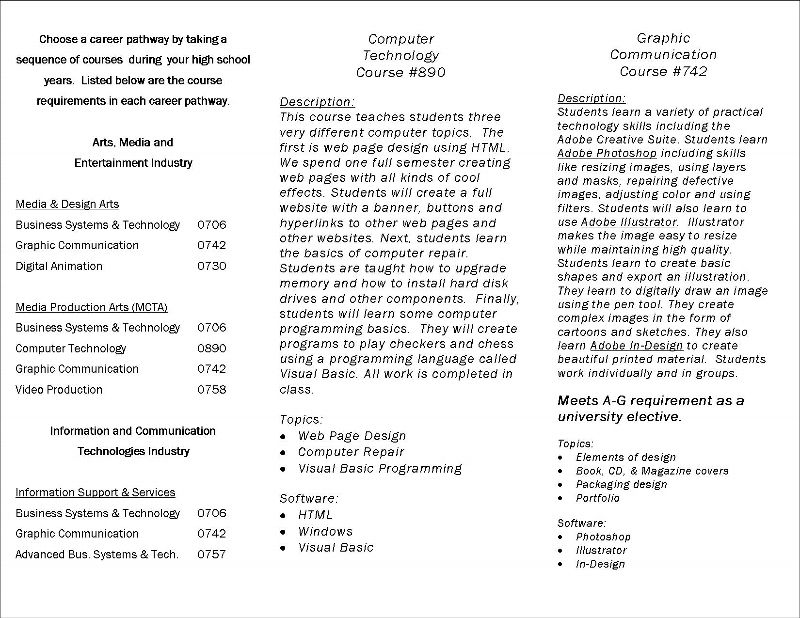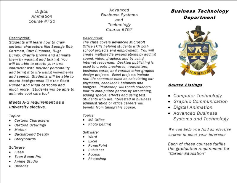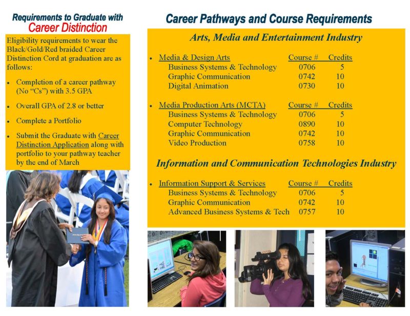 The career pathways in the Business and Computer Education department are aligned with current local and state research regarding entry-level career openings projected by government and employment agencies. The United States Department of Labor predicts that employment in the business service industries will continue to grow at a fast pace. These industries include Arts, Media & Entertainment; Business & Finance; Information & Communication Technologies; and Marketing, Sales & Service.